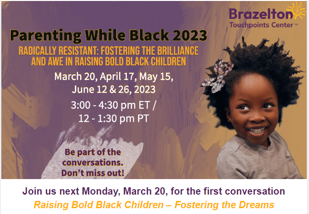 In collaboration with the Brazelton Touchpoints Center, we are excited to share the 2023 Parenting While Black series, Radically Resistant: Fostering the Brilliance and Awe in Raising Bold Black Children. This free virtual series offers a safe and welcoming space to hold conversations for and by Black families.