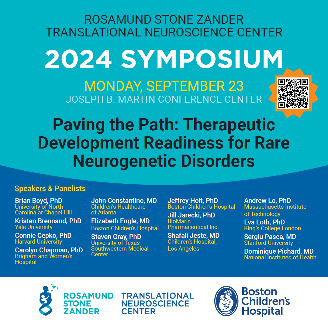 Registration is now closed! Please join us for the Rosamund Stone Zander Translational Neuroscience center’s fifth research symposium, entitled “Paving the Path: Therapeutic Development Readiness for Rare Neurogenetic Disorders” on Monday, September 23, 2024 at Harvard Medical School’s Joseph B. Martin Conference Center.