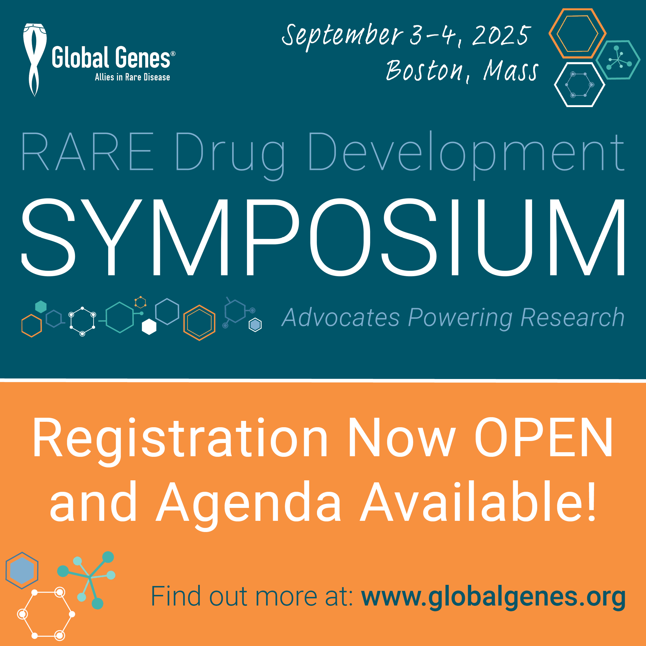 September 3-4, 2025: Global Genes Rare Drug Development Symposium (RDDS) in Boston, MA